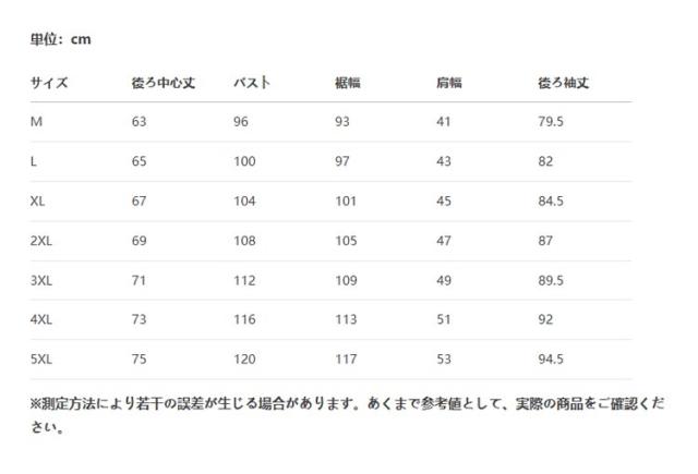 | サイズ | M L XL 2XL 3XL 4XL 5XL |