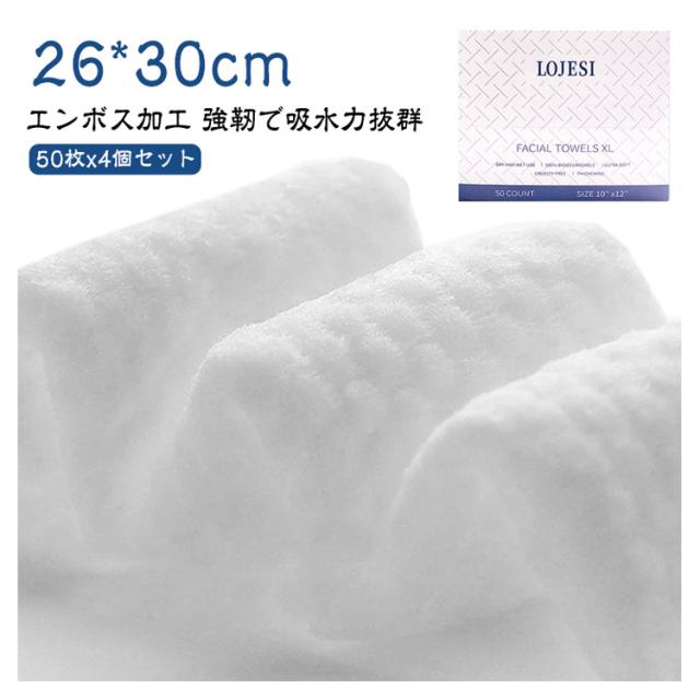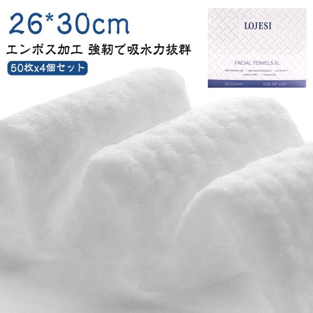 大きめ 26*30cm 50枚x4個 フェイスタオル 使い捨てタオル 敏感肌 洗顔 綿 厚手 50枚x4個 フェイシャルタオル 吸水 クレンジングタオル コンパクト 使い捨て おしりふき タオル エンボス加工 瞬間吸湿 洗顔タオル コットン