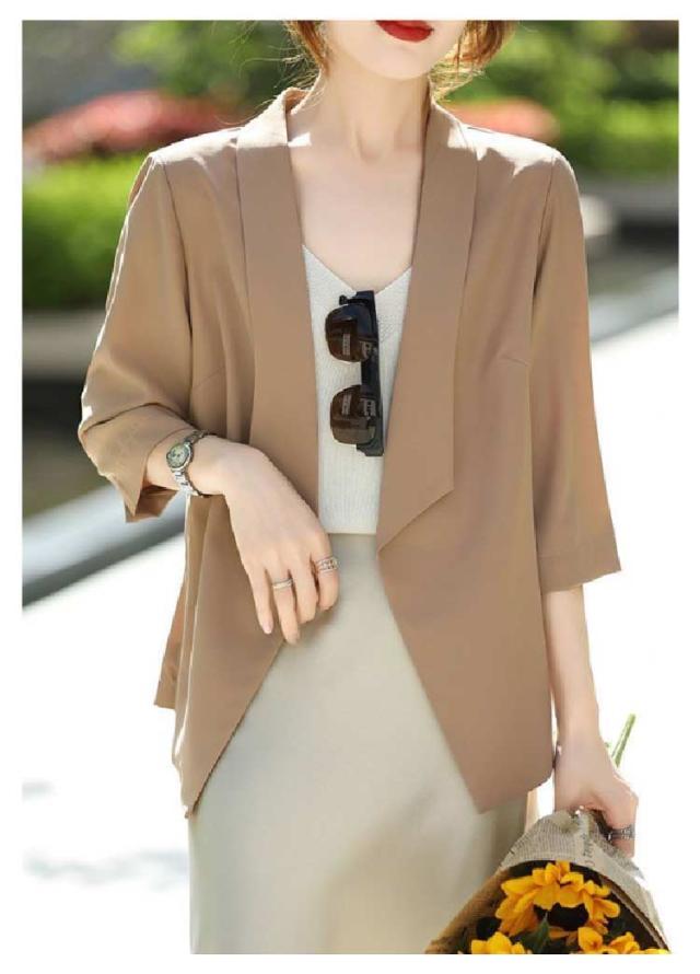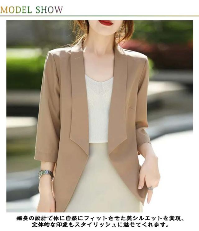 吸水速乾 テーラードジャケット七分袖 ジャケット 夏スーツ レディーススーツ 日焼け止め オフィス スーツジャケット ゆったり 日よけ アイスシルク カジュアル サマージャケット カジュアルスーツ 洗える サマージャケット 接触冷感 UVカット お出かけ 春 夏 秋 涼しい
