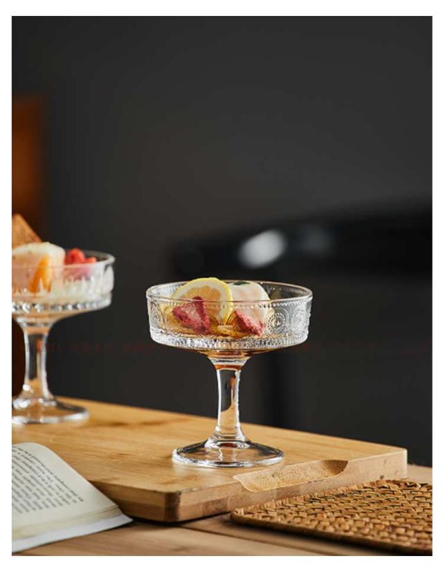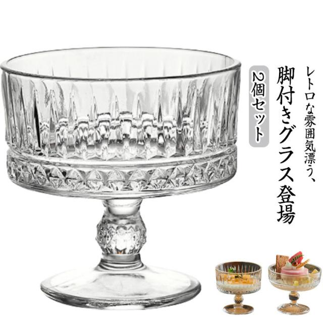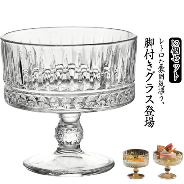足付きグラス デザートカップ 250ml 【2個セット】レトロ コップ 300ml パフェグラス サンデー 深型 脚付きデザート タンブラー ゴブレットグラス 脚付グラス 花柄プリント フリーカップ ワイングラス おしゃれ クリームソーダ かわいい