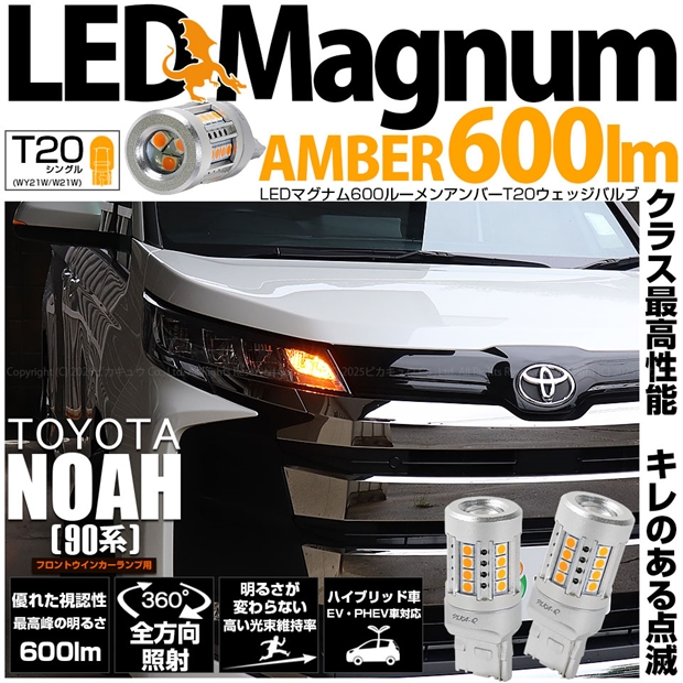 ピカキュウ,LED専門店,LEDバルブ,T20,W21W,WY21W,ウインカー専用,驚異の明るさ600lm,LEDMAGNUM,マグナム,爆光ウインカー,トヨタ,TOYOTA,ノア,NOAH,90系,S-Zグレード,S-Gグレード