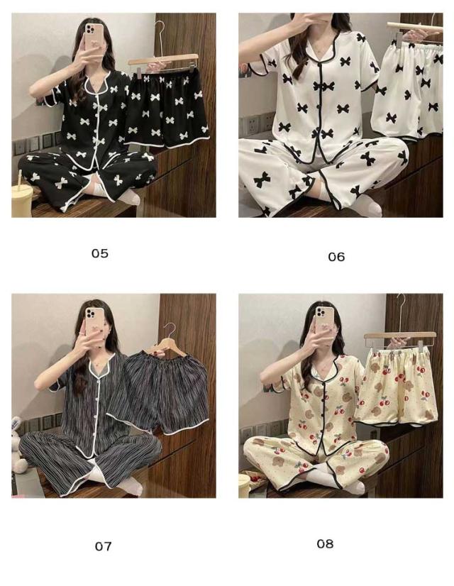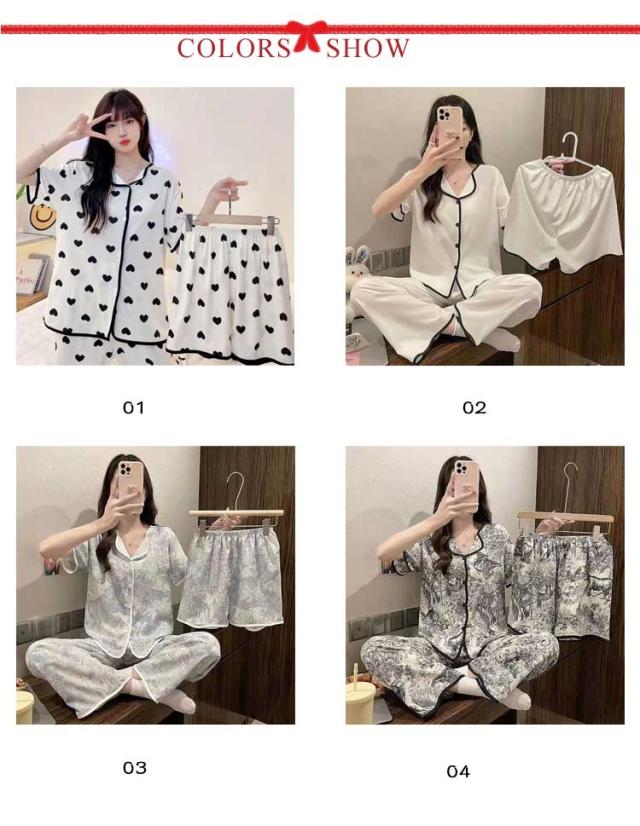| 【パジャマ3点セット】【S〜3XL】【8color】 大人可愛いデザインのパジャマ3点セットです。 前開き前ボタンタイプで着やすいので、授乳や入院などにもおすすめ。 ウエストはゴム仕様なので、たくさん動いてもストレスなく快適に着用いただけます。 おうち時間も可愛く♪夏を涼しく快適に過ごせる着心地抜群なルームウェア。 | |
