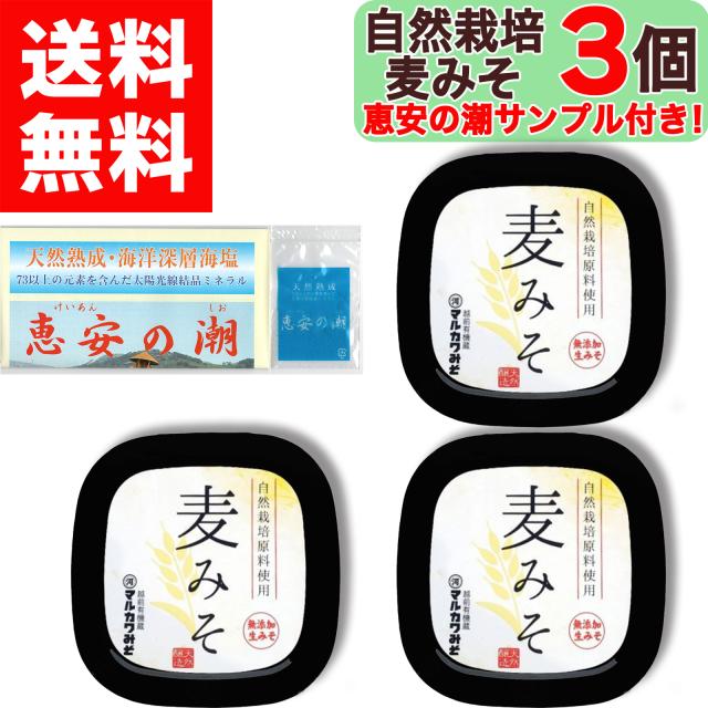 【美味しいお塩のサンプル付き!】 マルカワみそ 自然栽培 麦みそ 400g × 3個 無添加 越前 地下水仕込み 天然醸造 木桶仕込み 生味噌 蔵付き麹菌 自然栽培大麦 自然栽培大豆 マルカワ味噌 まるかわ味噌 まるかわ みそ 味噌 丸川 丸河