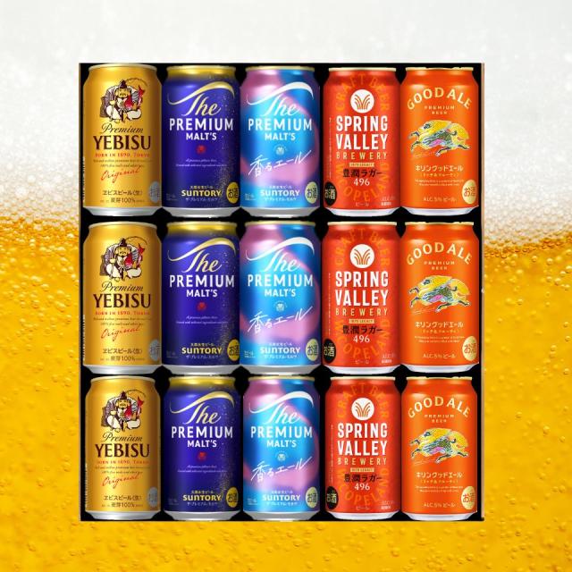 母の日 ビールギフト プレミアムビール 5種 飲み比べ 15本セット 詰め合わせ グッドエール スプリングバレー エビス プレモル 香るエール 缶ビール ギフトセット 内祝い お返し 男性 60代 70代 80代