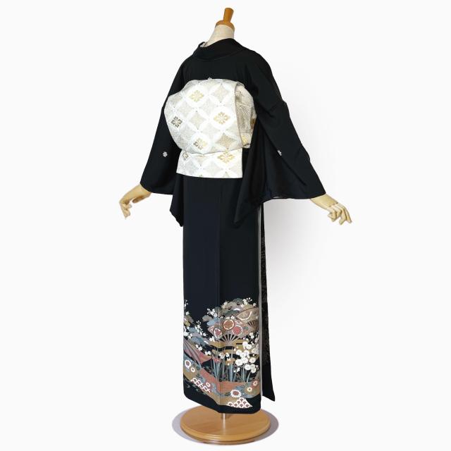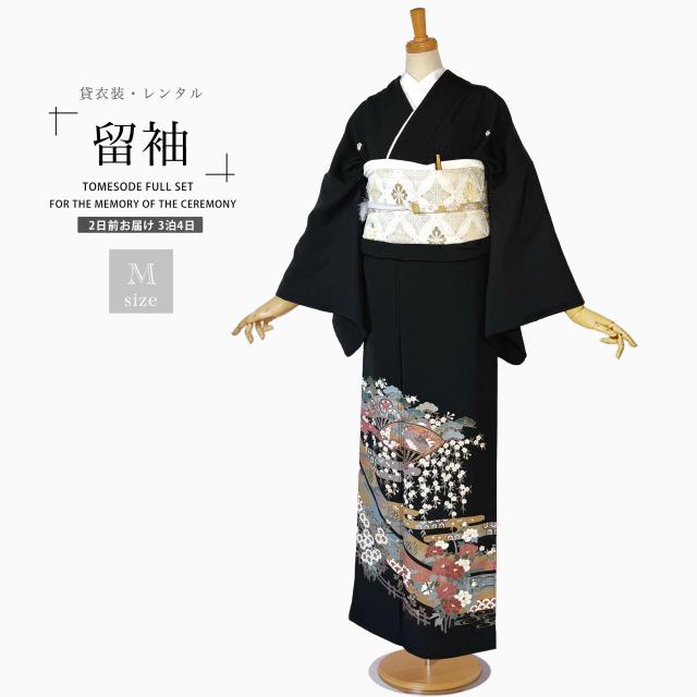 【レンタル】黒留袖 フルセット 五三桐 正絹 礼装 結婚式 母親 親族用 着物 3泊4日 往復送料無料 簡単返却 【Mサイズ No.0003】