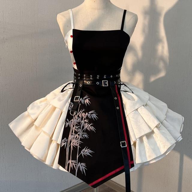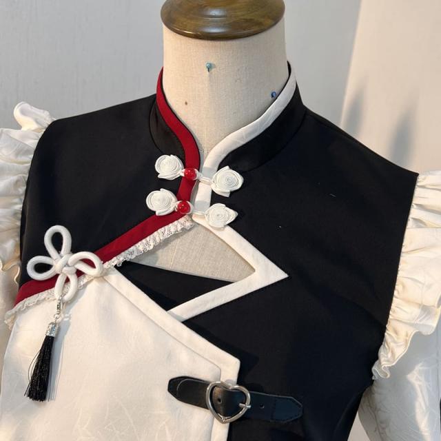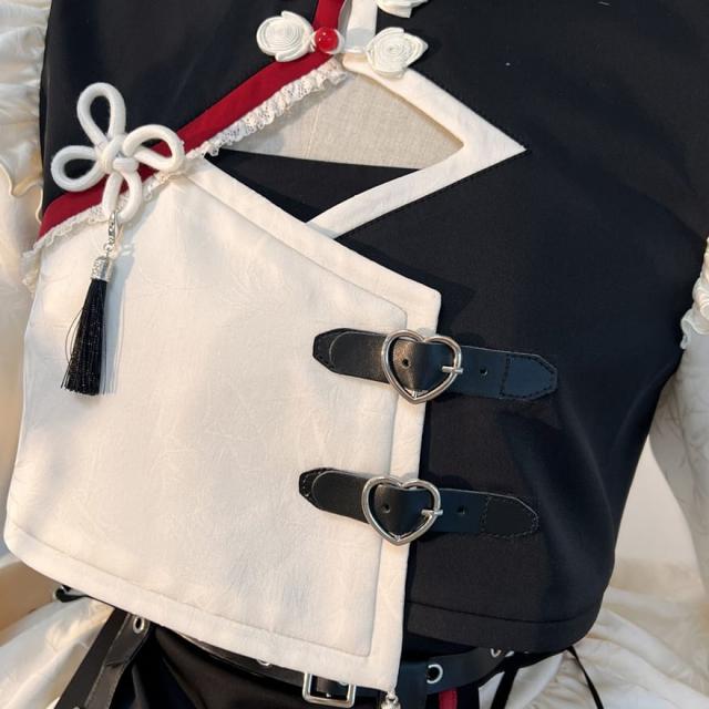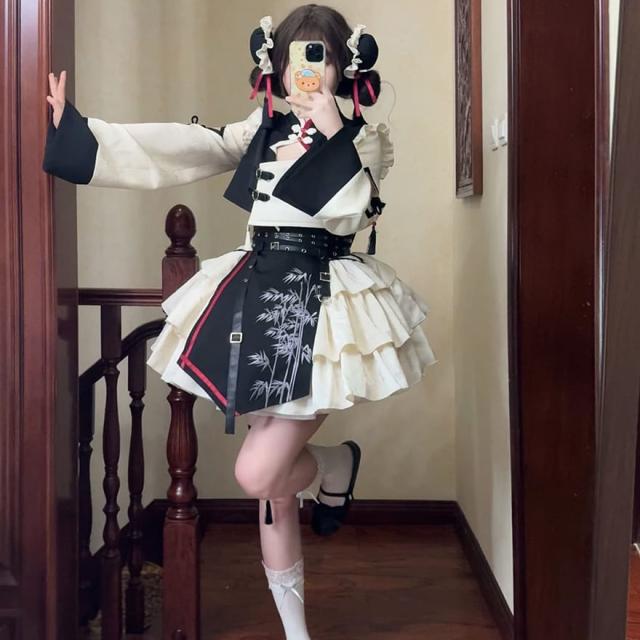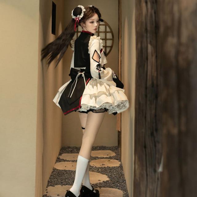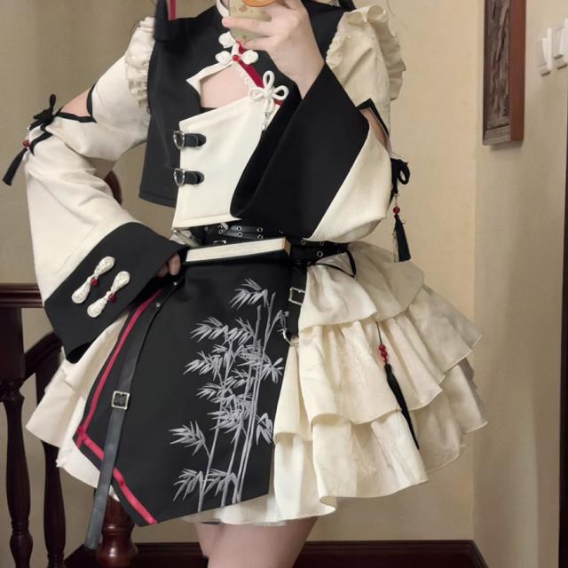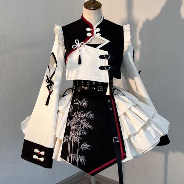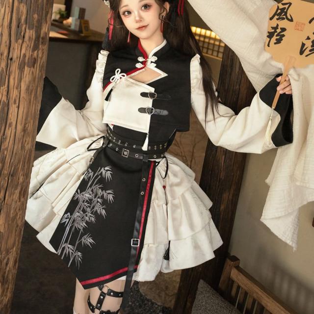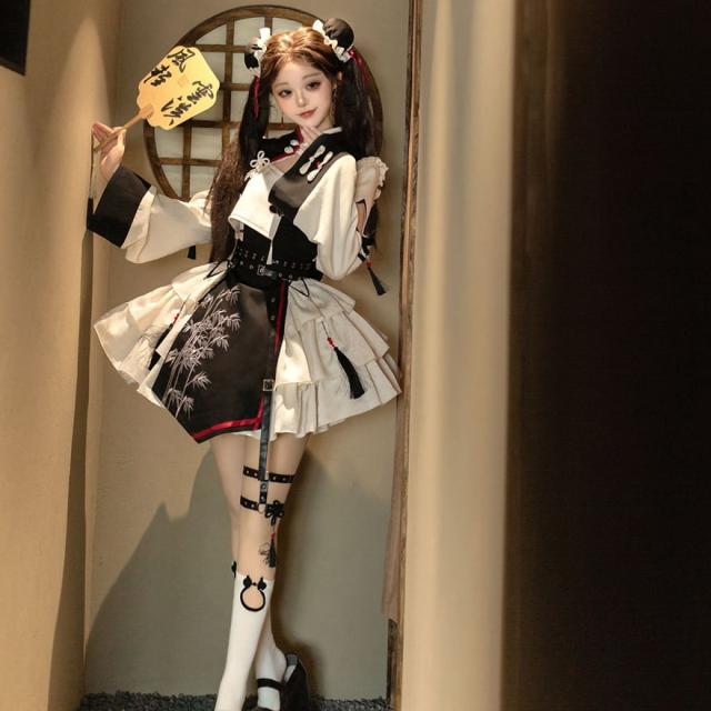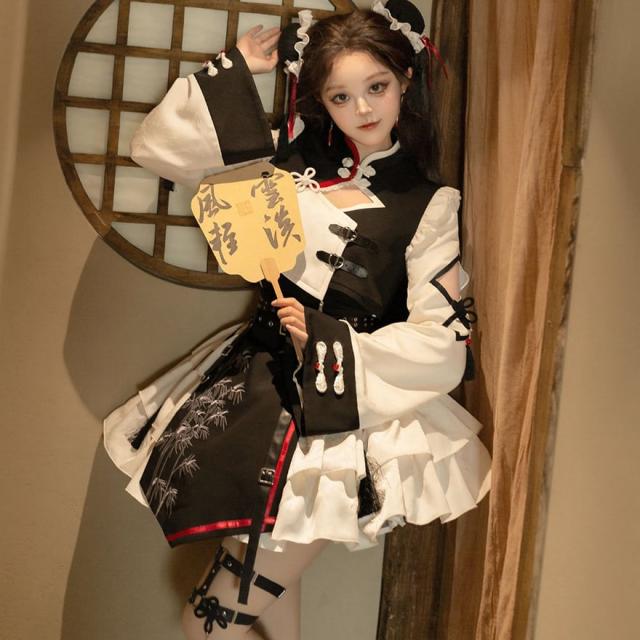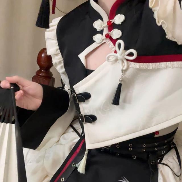 【即納】 チャイナ風 中華ロリータ スタンドネック ジャケット ジャンパースカート ヘッドドレス タッセル 刺繍 イベント衣装 ステージ衣装 撮影会衣装