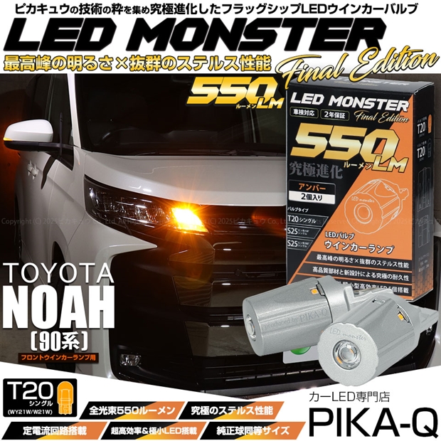 トヨタ ノア[90系 S-Z/S-Gグレード]対応 フロントウインカーランプ用LEDバルブ LED MONSTER 550lm LEDウインカーバルブ 明るさ:550lm 色:アンバー バルブ規格:T20シングル[WY21W/W21W兼用] 1セット2個入 |