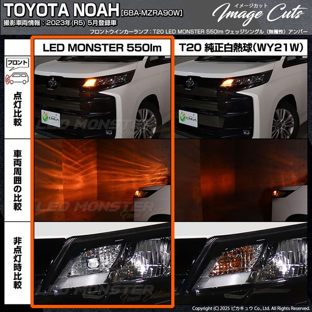 トヨタ ノア (90系 S-Z/S-Gグレード) 対応 フロントウインカーランプ MONSTER 550lm アンバー 2個 5-D-7