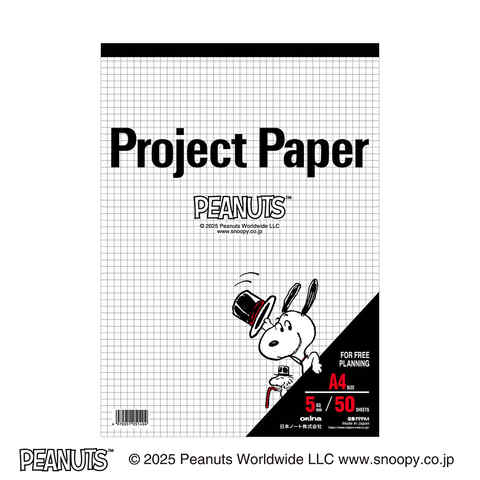 スヌーピー PEANUTSデザイン プロジェクトペーパー A4 5mm方眼罫 イラスト入 50枚 かわいい オキナ 日本ノート 送料無料