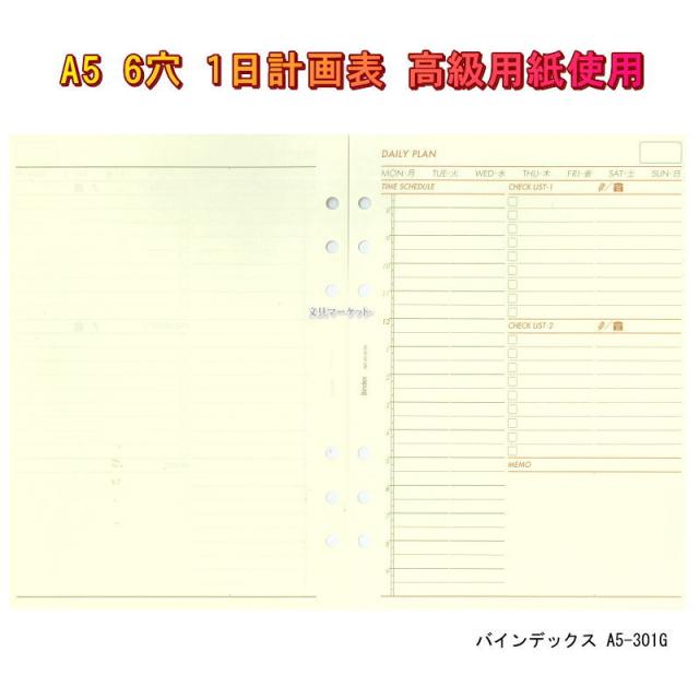 システム手帳 A5 リフィル フリーダイアリー 1日計画表 100枚 デスクサイズレフィル 6穴 NOLTY能率手帳ゴールド用紙 ビジネス 社会人 バインデックス A5-301g【ネコポス便対応】