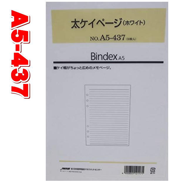 システム手帳 リフィル A5 太ケイページ ホワイト デスクサイズ 6穴 バインデックス A5-437 【ネコポス便対応】