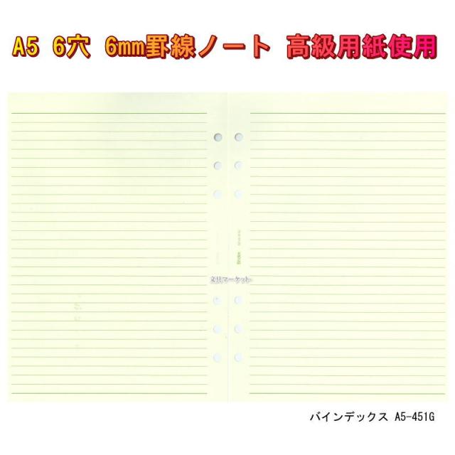 システム手帳 A5 リフィル 罫ページ 6mm 100枚入 大容量 アイボリー メモレフィル NOLTY能率手帳ゴールド用紙 バインデックス A5-451G【ネコポス便対応】