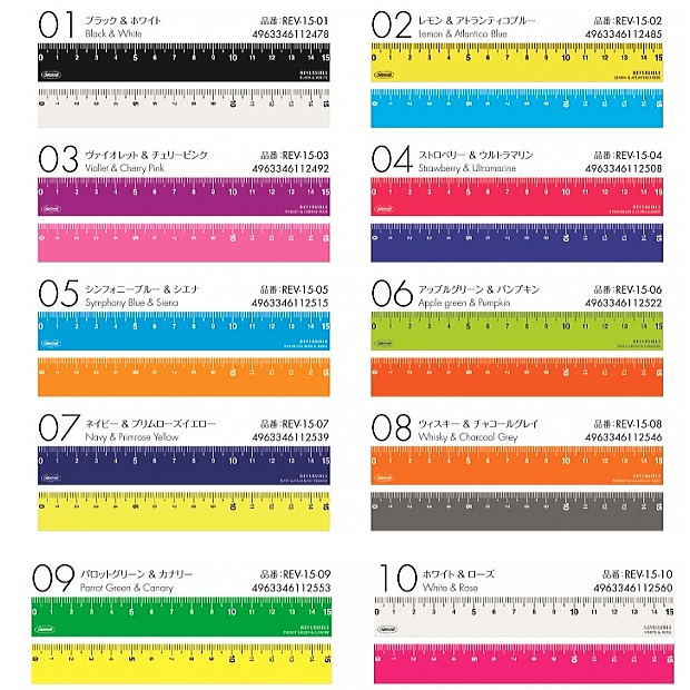 両面カラー定規 15cm リバーシブル定規 REV-15 目盛りが見やすい定規 おしゃれ 小学生 中学生