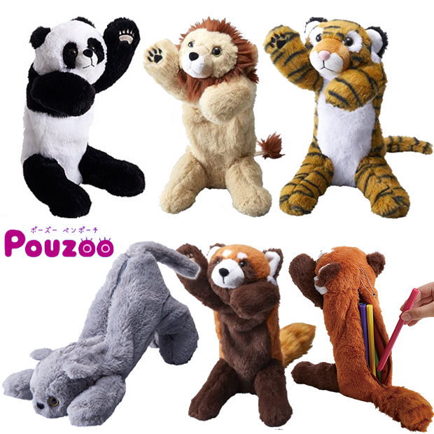 かわいい動物のペンケース ポーズ— ペンポーチ パンダ 猫 ライオン トラ ぬいぐるみ