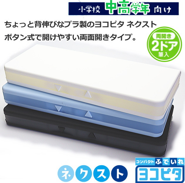 ヨコピタ 筆箱 ネクスト プラ ペンケース 無地 シンプル サンスター文具 ホワイト ブラック ブルー 薄型 プラスチック コンパクトふでいれ 筆入れ ペンケース 箱型