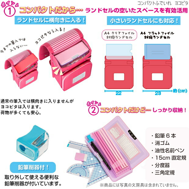 コンパクト筆入 ヨコピタ ランドセルに横向きに入る筆箱 無地 人気のペンケース