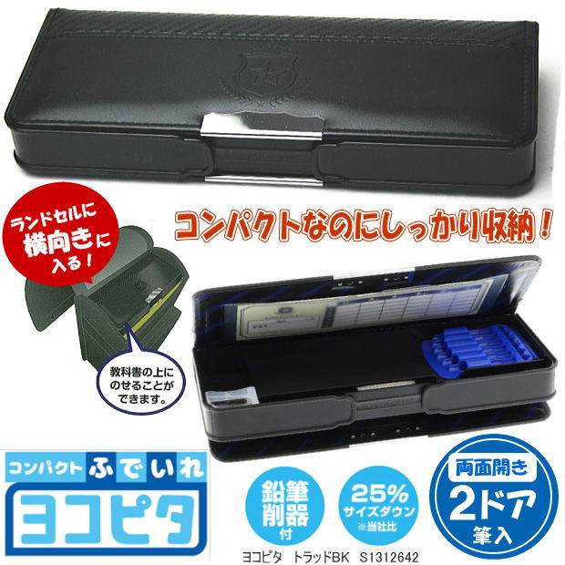 コンパクト筆入れ ヨコピタ 筆箱 黒 限定トラッド ペンケース 小学生 新入学 男の子 サンスター文具 1313991