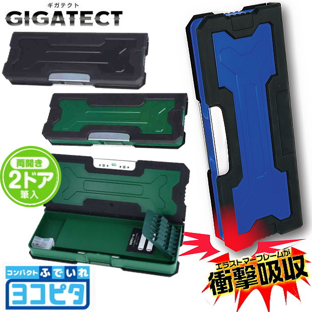 耐衝撃型コンパクト筆入れ ヨコピタ 筆箱 2ドア ギガテクト 丈夫で大容量 小学生男子に人気 GIGATECT 緑 黒 青