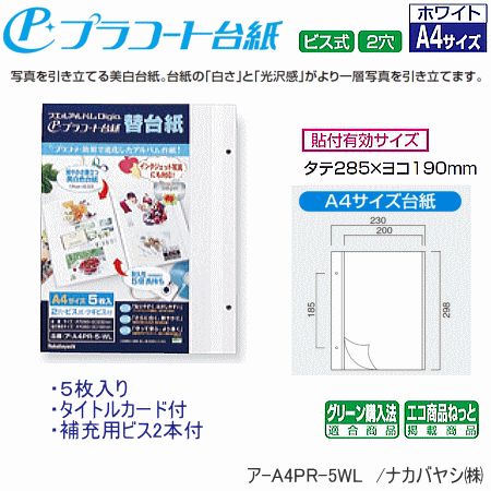 アルバム台紙 ナカバヤシ ア-A4PR-5-WL A4サイズ プラコート台紙 フエルアルバム