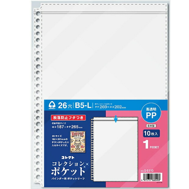 | 商品名: | 透明ポケットリーフ 透明ポケット1 B5-L判 26穴 |