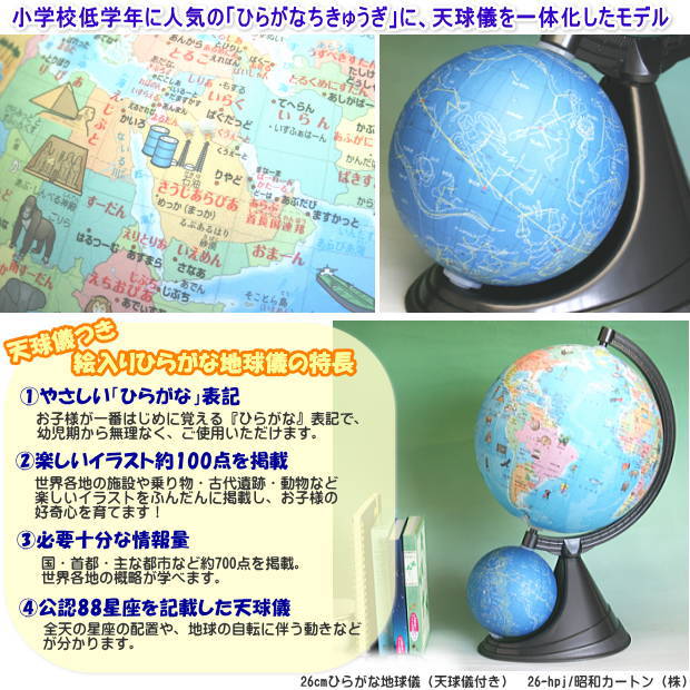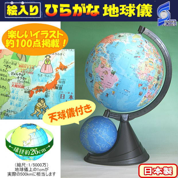 二球儀 絵入りひらがな地球儀+天球儀 学習地球儀