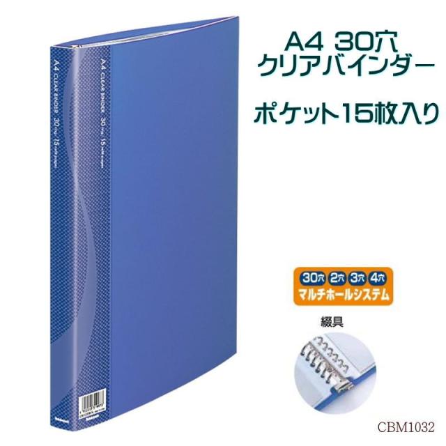 リングバインダー A4 30穴 届いてすぐに使えるクリヤーポケット15枚付 ブルー 青 ルーズリーフ ナカバヤシ CBM1032 シンプルで使いやすいクリアバインダー