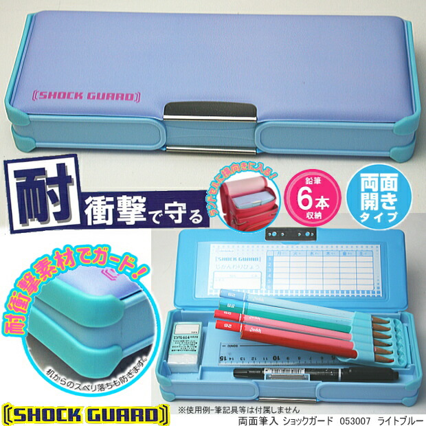 耐衝撃で守る両面筆入 ショックガード筆箱 コンパクトで大容量 無地水色