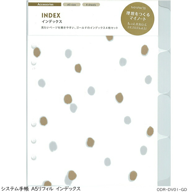マークス システム手帳 A5正寸 リフィルドット柄インデックス ゴールド