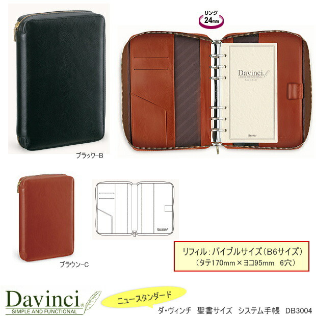 ダ・ヴィンチ システム手帳 バイブル ラウンドファスナー式