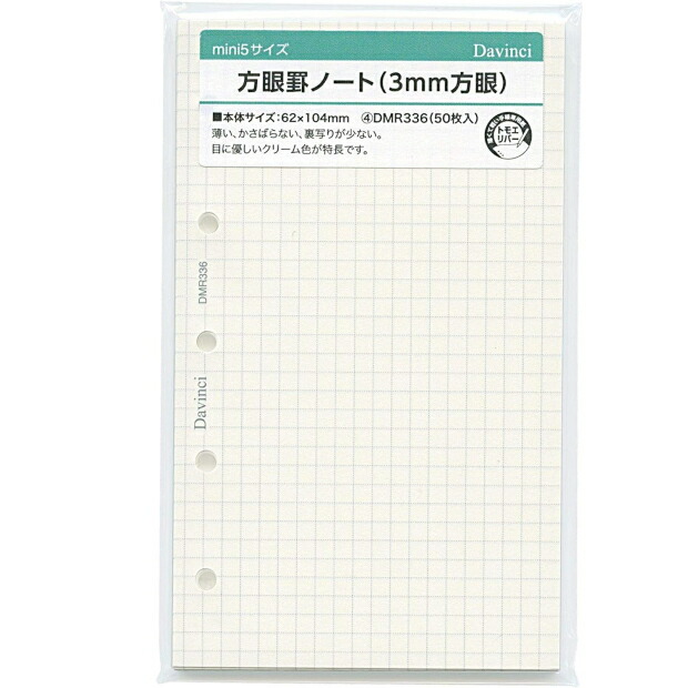 システム手帳 リフィル M5 マイクロミニ ミニ5穴サイズ 方眼罫ノート 3mm方眼 DMR336