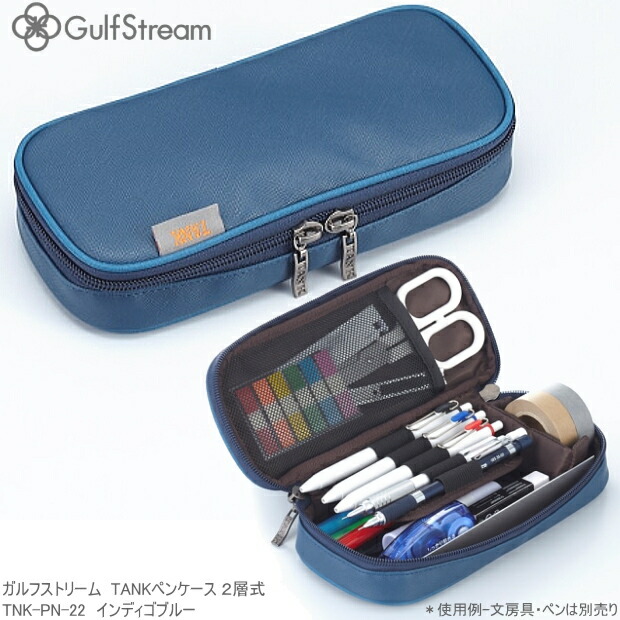 ガルフストリーム タンク ペンケース 二階建て 大容量 大人の筆箱 合皮製 インディゴブルー