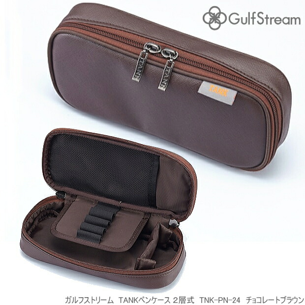 ガルフストリーム タンク ペンケース 二階建て 大容量 大人の筆箱 合成皮革製 茶色