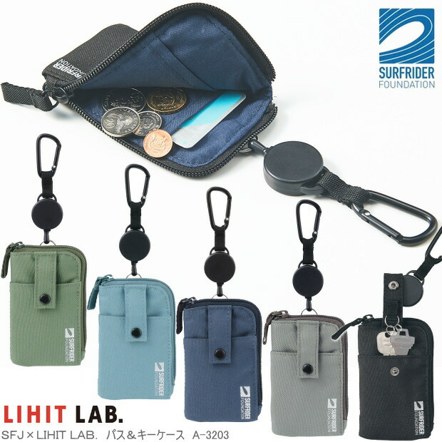 SFJ×LIHIT LAB. パス&キーケース リール付 撥水加工 大人 おすすめ SDGs 高校生 中学生 男子に人気 子供 落ちない ランドセルにもつけられるブラブラしない 鍵ケース ICカードケース 便利 シンプル かっこいい