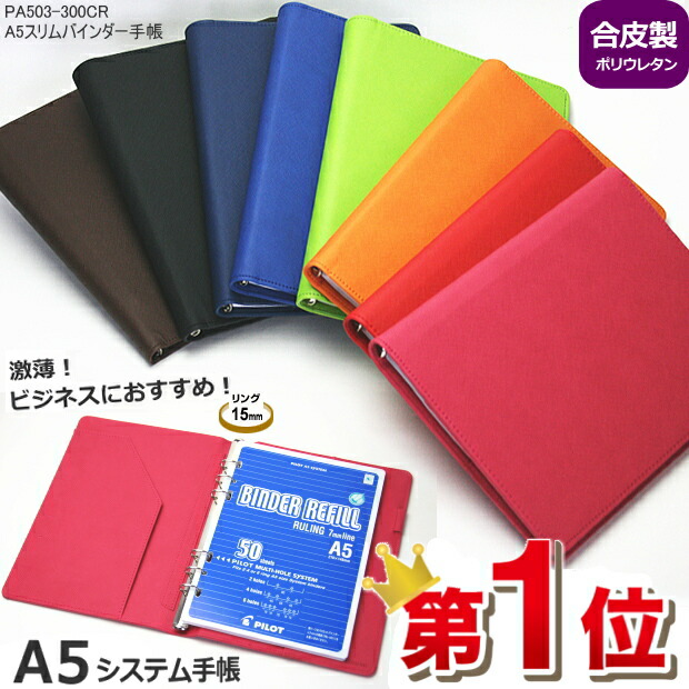 【楽天1位】システム手帳 薄型 A5サイズ 6穴 合成皮革製 カラフルでシンプル すぐに使えるメモリフィル付き 社会人 メンズ レディース 新入学 就職 ギフト ネコポス便対応 PA503-300CR 全8色