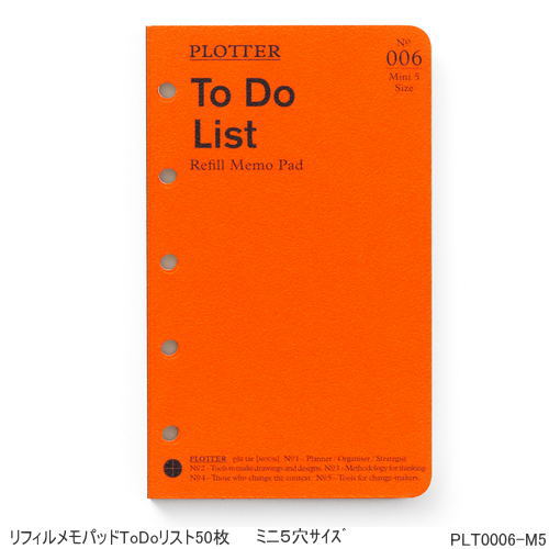 システム手帳リフィル M5 メモパッドToDoリスト50枚 ミニ5穴サイズ プロッター