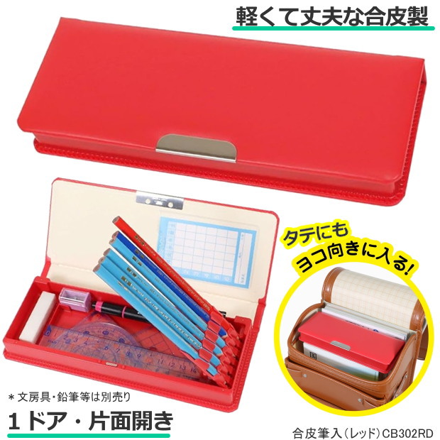 合皮筆入 赤色 筆箱 小学校 女子 箱型 ペンケース 小学生 1年生 おすすめ シンプル 新入学 軽くて丈夫