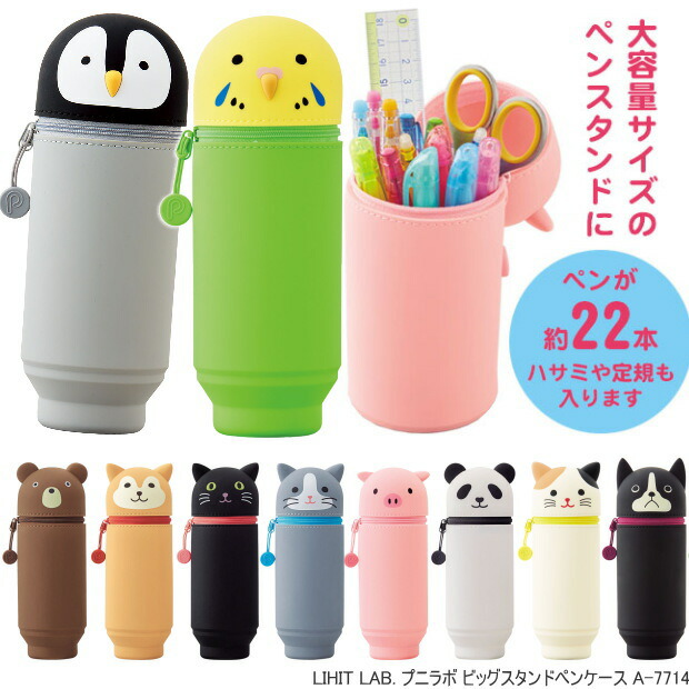 | 大好評の立つペンケース大容量タイプ。上から押すだけでペンスタンドに早変わり。 やわらかいシリコン素材の動物シリーズ "プニラボ" 。シリコン素材なので汚れても水洗いできるペンケース。 |