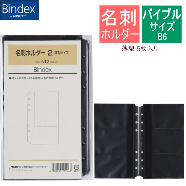 システム手帳 リフィル バイブル 名刺ホルダー 薄型 B6 5枚入り リフィール 聖書サイズ レフィル 6穴 バインデックス 513【ネコポス便対応】
