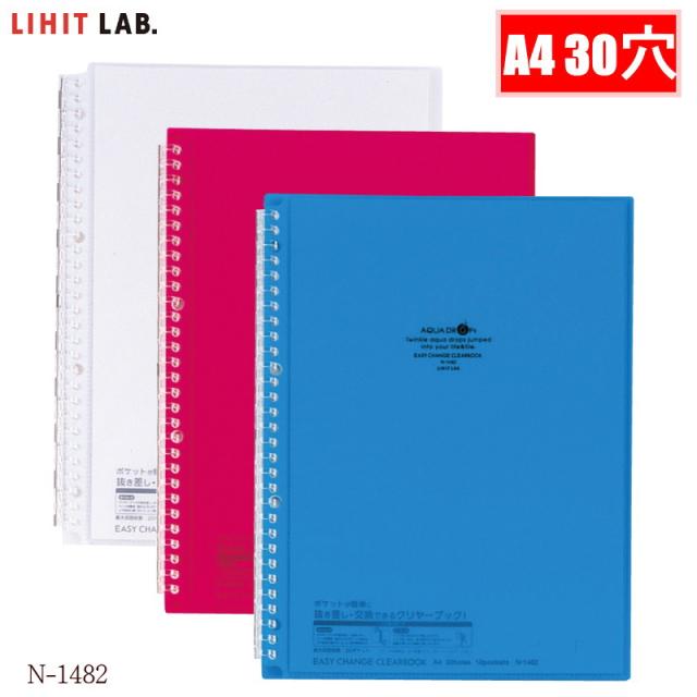 リングバインダー A4 30穴 クリアファイル 10ポケット ルーズリーフ クリヤーブック 薄型 プラスチック製 青 赤 白 N-1482 リヒト