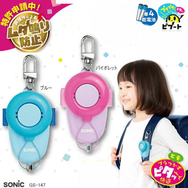 紐がぶらぶらしない安心・安全な防犯ブザー ピブート GS-147ソニック 防犯アラーム 小学校 男の子 女の子 ピンク 青SONIC