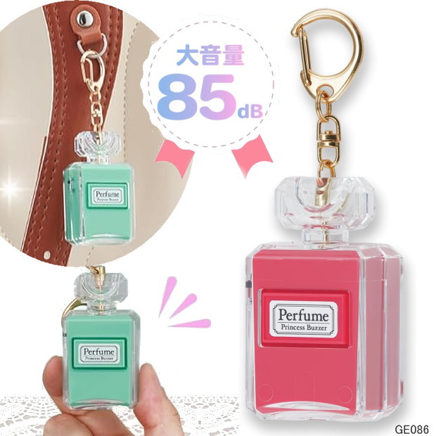 | アスカの人気プリンセスブザーに、パフューム(香水ボトル型)が登場!香水そっくりなおしゃれな見た目だけど、防犯対策もバッチリ。 ・大音量 チェーンを引くと約85dBの大きな音が鳴ります。通学・通勤時などの防犯対策に、あると安心です。 ・ピンプラグは引き抜けないタイプなので、紛失のリスクが少ないです。 【電源スイッチ】誤作動防止のスイッチ付きなので、誤って作動した時も電源スイッチをオフにすれば停止します。 |