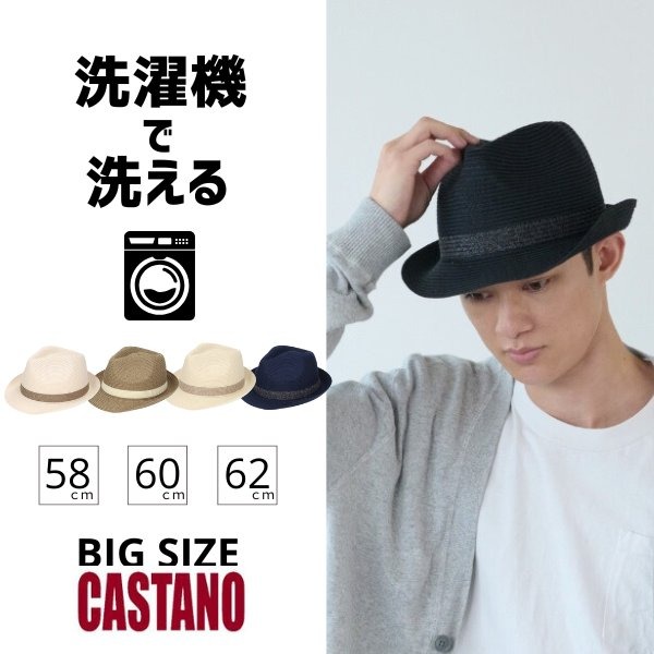 CASTANO 洗濯機で洗える ブレードハット M〜3Lサイズ 大きいサイズ 洗濯機対応 水に強い 折りたたみ 中折れハット ストローハット 麦わら帽子 ポケッタブルハット 紫外線対策 UVケア 日よけ メンズ 男性 紳士 春 夏 カスターノ 帽子 252-032005