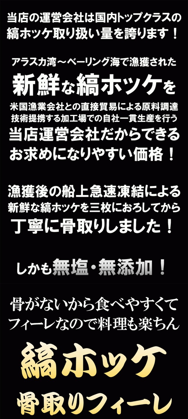 - ホッケは、たいてい塩焼きで食べる機会が多いので次は無塩では無く減塩タイプが有ると良いかなぁーと思いました。
