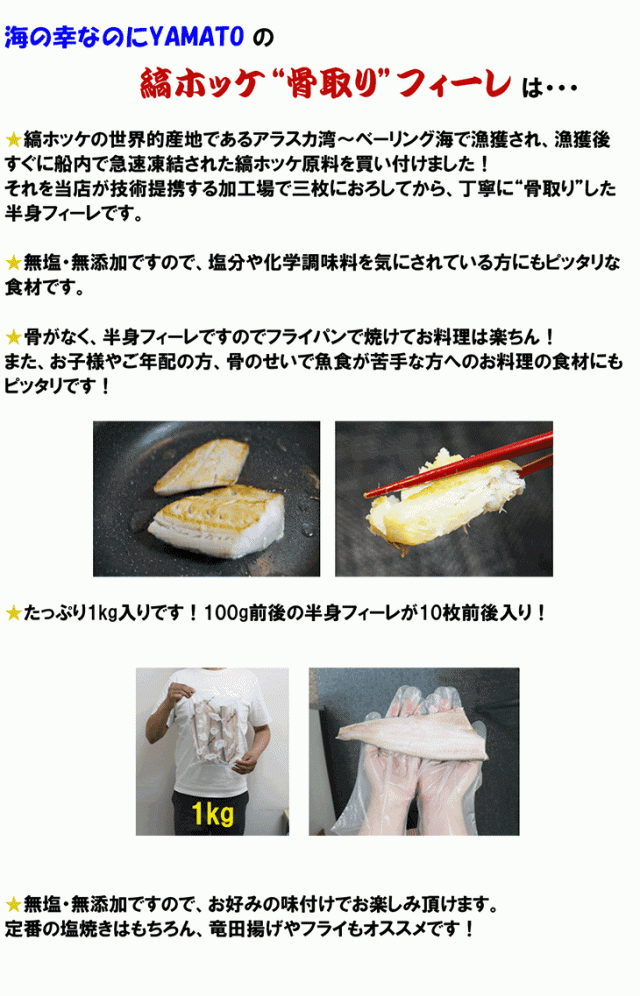 無塩・無添加 縞ホッケ“骨取り”半身フィーレ 100g前後サイズ 1kg 時短 調理簡単 弁当