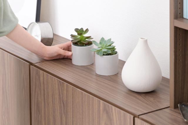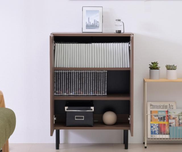 扉内には本やDVDなどをたっぷり収納でき、天板にはお気に入りの小物や植物を飾れる、スマートな本棚です。シンプルでコンパクト設計なので、スッキリと整ったお部屋になります。