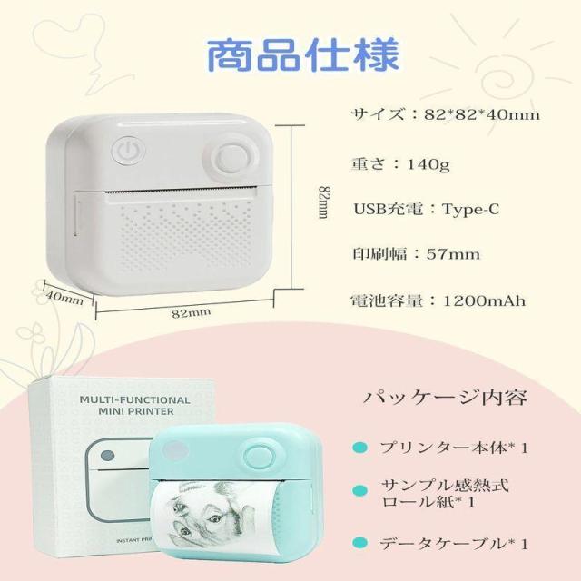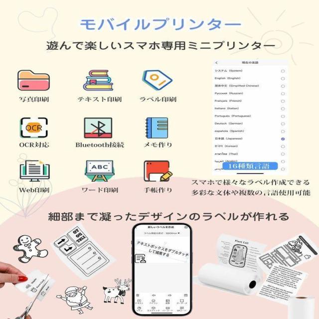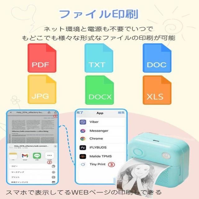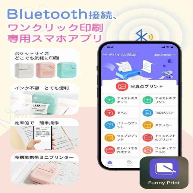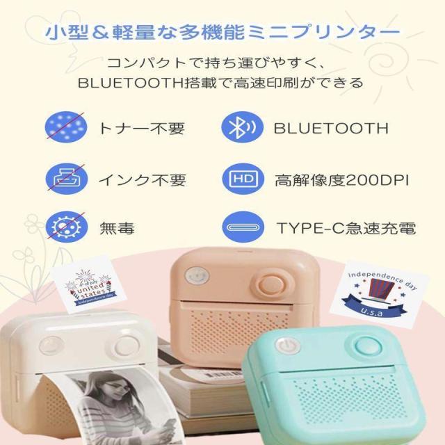 即日発送 ポケットプリンター コンパクト ミニプリンター モバイルプリンター サーマルプリンター ポケットプリンター 小型白黒プリンター感熱プリンター Bluetooth搭載