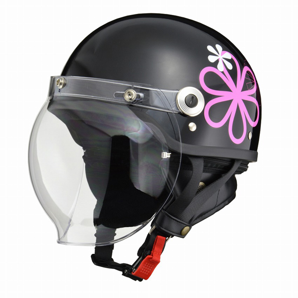 ハーフヘルメット クロス バブルシールド付 ブラックフラワー F CR-760BKFLWR [二輪 バイク用品 LEAD]