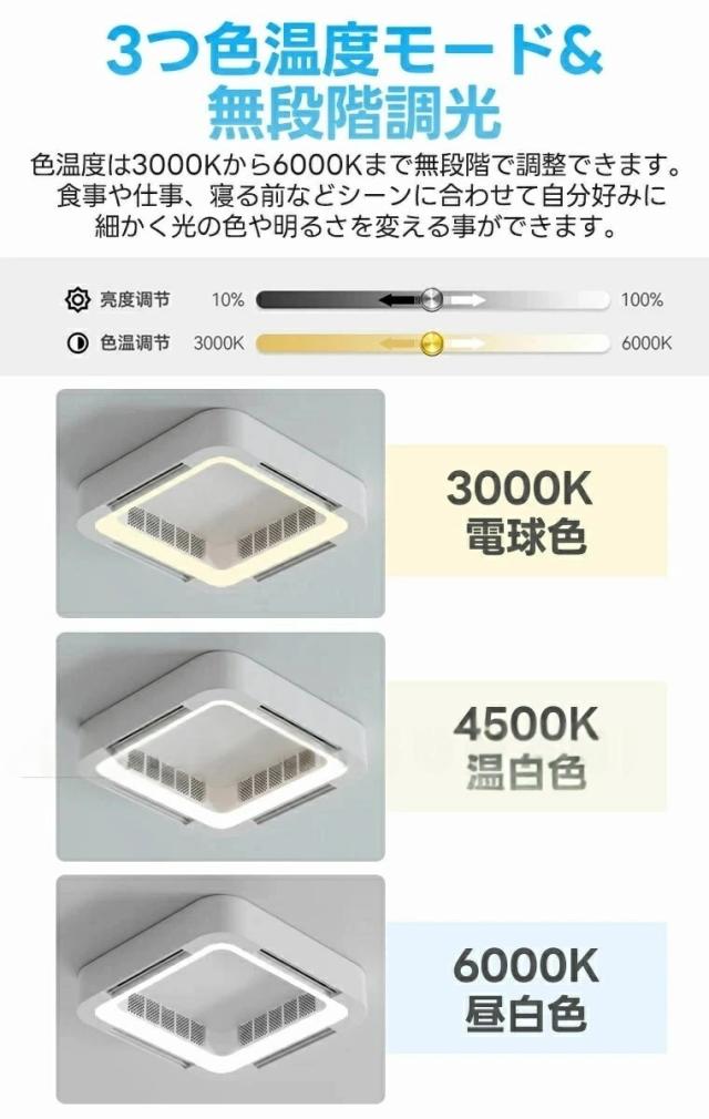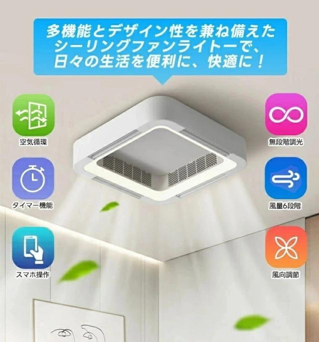 シーリングファンライト led 羽なし 調光調色 シーリングライト おしゃれ シーリングファン 12畳 6段風量 風向調節 天井照明 ファン付き照明 LEDライト サーキュレーター 扇風機 リモコン操作 薄型 タイマー 空気循環