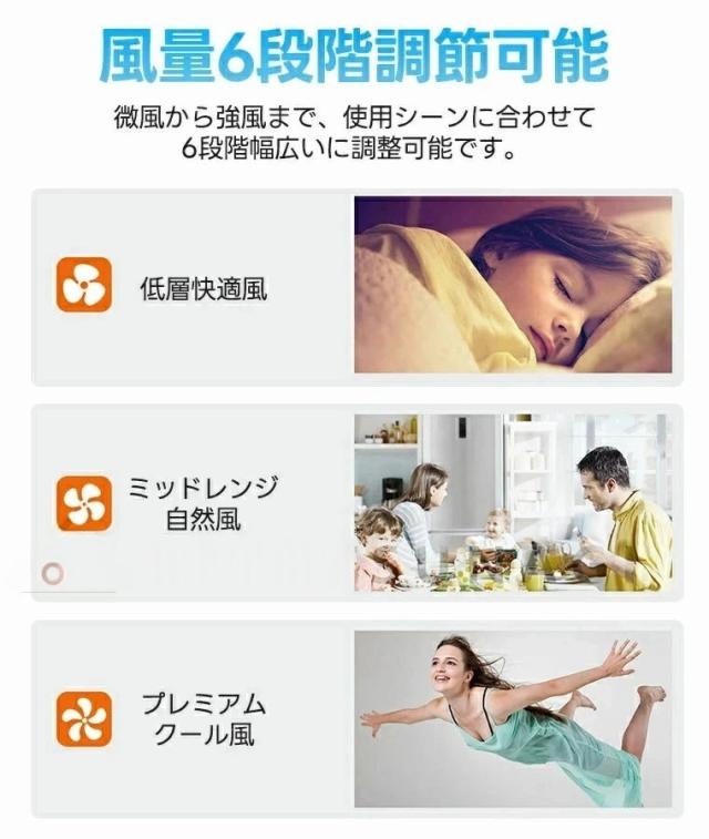微風から強風まで、使用シーンに合わせて6段階幅広いに調整可能です。