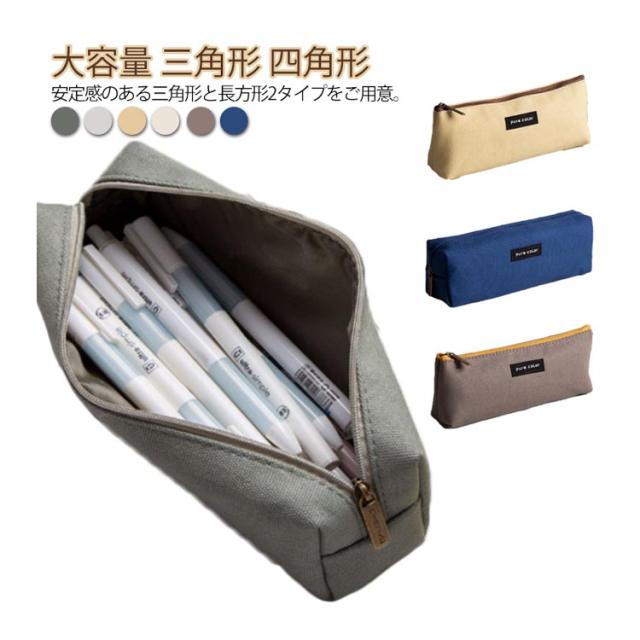 収納ポーチ ペンケース 防水 おしゃれ 文房具箱 ファスナー 筆入れ シンプル 収納袋 ふでばこ 筆記用具 大容量 三角形 ペンポーチ 便利 キャンバス 帆布 軽量 筆箱 ふで箱 防水 男の子 女の子 小学生 きれいめ